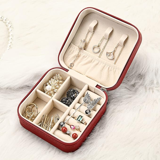 Mini Jewelry Case, Small Travel Jewelry Organizer, Portable Jewelry Box Mini Storage Organizer Display Box For Rings Earrings Necklaces (Red-4pcs)