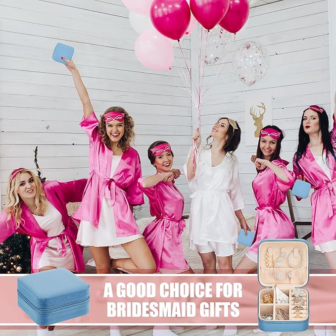 Taiyin 6 Pcs Travel Jewelry Case Organizer Bridesmaid Gift Boxes Mini Storage Organizer Box(Blue)