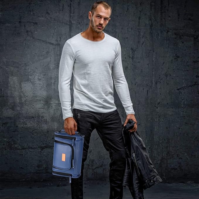 - Large Capacity -- Travel toiletry bags size: 11.5"x 4.5" x 7.9", with wide open design to help you keep toothpaste, toothbrush, mouthwash, deodorant, razor, extra blades, shaving cream, shampoo/conditioner, soap, makeups, etc.