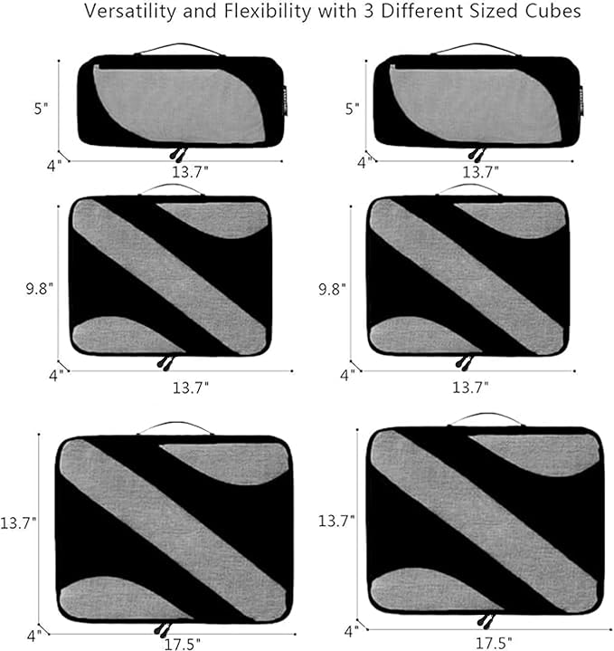 - Multi Functional: The 6 set organizers fits like a glove into regular suitcase; You can choose different cubes to fits your suitcase; That is an ideal way to keep organized for family breaks, business travel, long-distance travel, cruise holidays