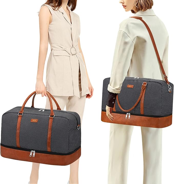 • Weekender Bag with Shoe Compartment: The bottom is a waterproof separated compartment, you can take shoes, dirty clothes, wash bags or other things in it, keep them clean and tidy. The set comes with 2 shoulder straps, you can carry travel bag on one shoulder or crossbody, releasing your hands and reducing pressure on hand.