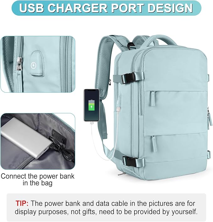 - 【USB PORT DESIGN】 This backpack has a USB charging port, which can be connected to a power bank inside the bag, and a cell phone connected to the outside of the bag through a data cable, allowing you to charge your cell phone or iPad while walking, reducing the burden on your hands and avoiding miss information. Please note that the backpack does not come with a power bank and data cable, it is only for the convenience of mobile phone charging.