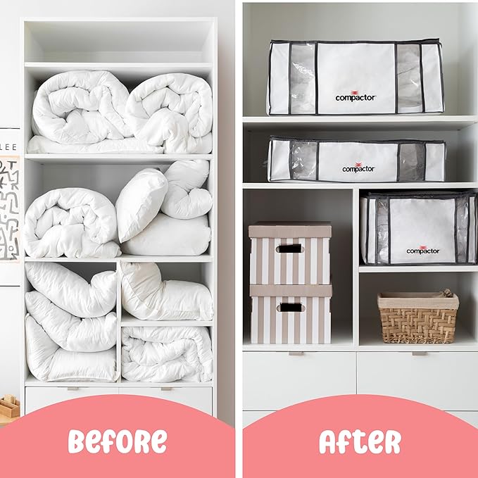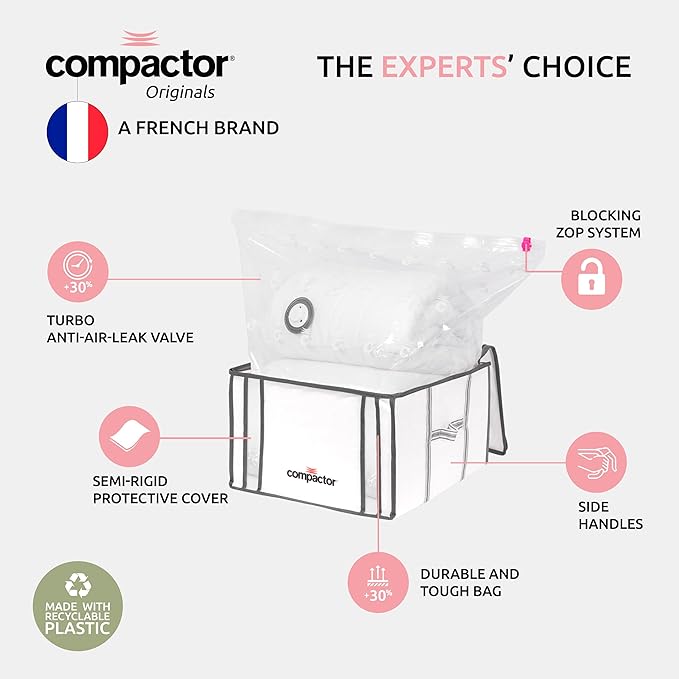 Compactor Vacuum Bags + Semi-Rigid Box, Space Saving Storage Bags, Seal Bags Compression for Comforters and Blankets, Sealer Clothes Storage, Size M, 125L | White