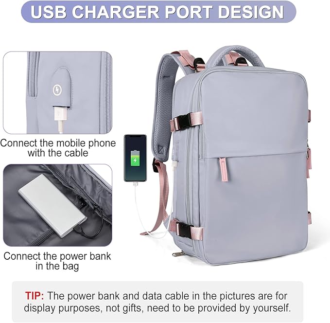 - 【USB PORT DESIGN】 This backpack has a USB charging port, which can be connected to a power bank inside the bag, and a cell phone connected to the outside of the bag through a data cable, allowing you to charge your cell phone or iPad while walking, reducing the burden on your hands and avoiding miss information. Please note that the backpack does not come with a power bank and data cable, it is only for the convenience of mobile phone charging.