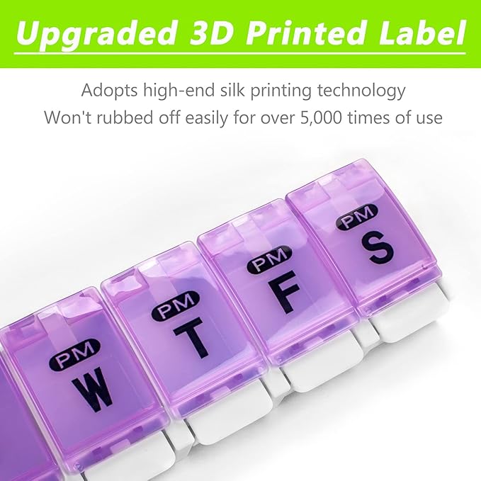 - Easy To Open: Our Extra Large 2 times a day pill box comes with push button design, press gently with your thumb on the front of this large 7 day pill organizer and the lid pops open, arthritis friendly, making it incredibly easy for you to open even with a single hand!