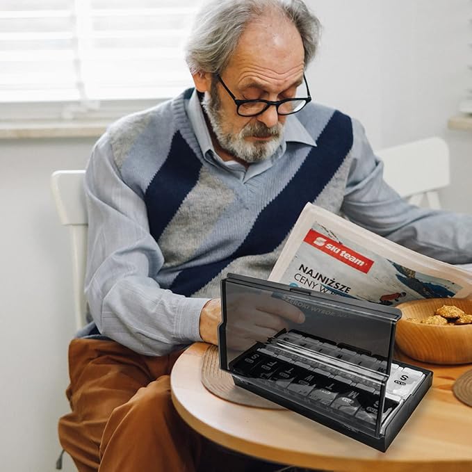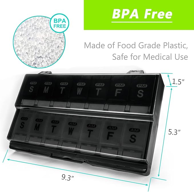 - Easy To Open: Our Extra Large 2 times a day pill box comes with push button design, press gently with your thumb on the front of this large 7 day pill organizer and the lid pops open, arthritis friendly, making it incredibly easy for you to open even with a single hand!