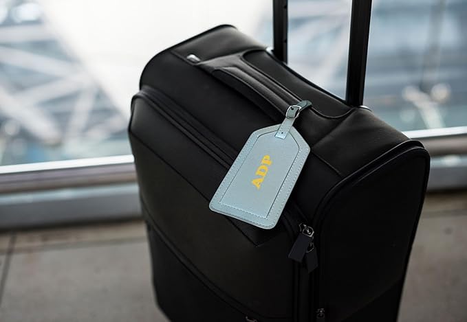 - Luggage Tag: strong & adjustable buckle and strap keeps securely fastened. Includes protective leather flap for privacy protection. Dimensions: 2.75" x 4.5" (not including buckle)