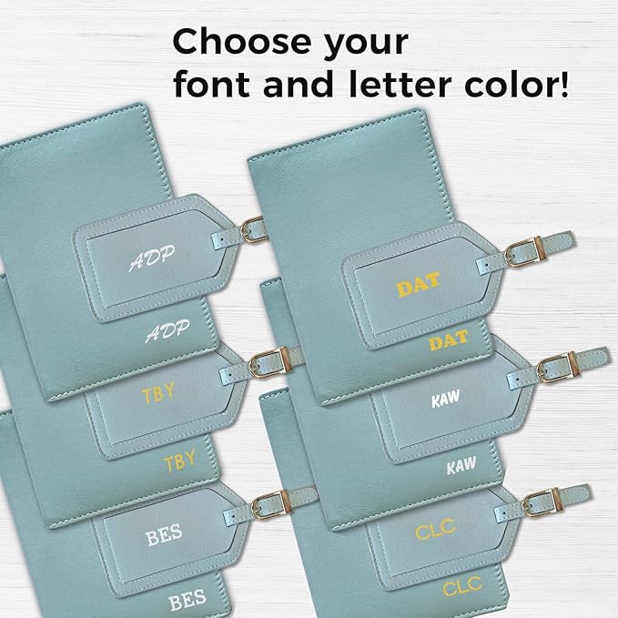Personalized Monogrammed Chambray Leather RFID Passport Wallet and Luggage Tag