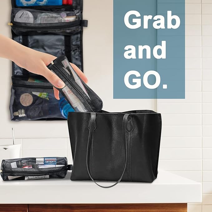 - Detachable Design: This travel toiletry bag has 4 separate compartments with zipper. Two of the bags are fixed to the organizer. The other two are detachable toiletry organizers that can be used independently for daily outing, placed in your handbag or backpack, and used as a small cosmetic bag, offers different combinations for your flexible use,you can choose how you want to carry the bag as needed.