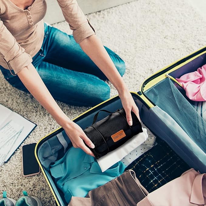 - Large Capacity: Two sizes makeup organizer travel are available .The size of large cosmetic bags for women 12.5 x 6.3 inch (rolled); 22.4 x12.5 inch(open).The size of small toiletry bags for women 10.5 x 6.3 inch (rolled); 22.4 x10.5 inch(open).durable quality fabric, lightweight design and easy to carry.
