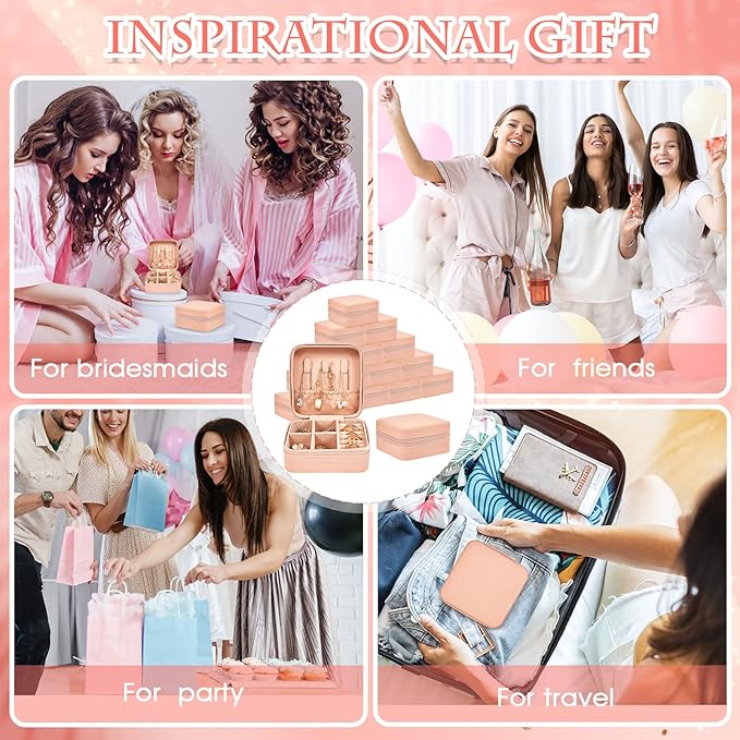 Taiyin 6 Pcs Travel Jewelry Case Box Bridesmaid Gifts Bulk Travel Jewelry Cases Boxes Small Jewels Organizers Mini Accessories Ornaments Storage for Women Girls Wedding Gifts (Pink)