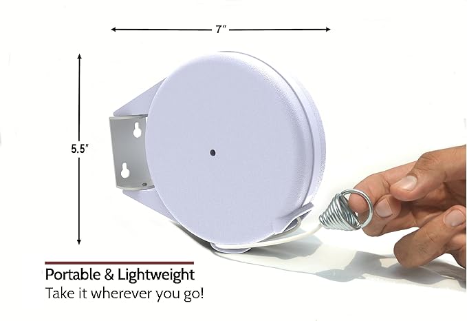 - Light And Compact – Lightweight Retractable Washing Line portable clothing line for your family. Now you can dry laundry indoors and outdoors. Excellent for Hotels, Patio, Balcony, Bathroom, Shower, Deck, Camping and more. Load up to 30 Lbs. Extendable up to 40 feet retractable hanging line.