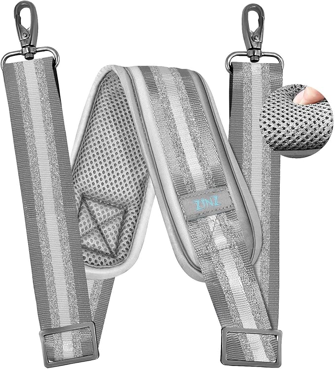 ZINZ 79 inch Shoulder Strap, Extra-thick Fixed Cushion Pad and Dual Clasps Universal Replacement Strap with Metal Swivel Hooks for Laptop Bags, Luggage Bags, Camera, Crossbody (200cm,Gray Silver)