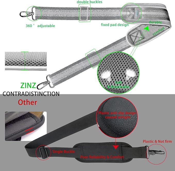- 1. ABOUT ZINZ BAG SHOULDER STRAP: ZINZ universal bag strap replacement can replace all broken straps of ANY BAG WITH D-RINGS OR EQUIVALENT HARDWARE. Especially for shoulder bag / laptop computer bag / briefcase / messenger bag / duffel bag / diaper bag / tool bag / guitar bag. Professional package, 24hrs after-sale service, 30-DAY MONEY-BACK for ZINZ Shoulder Strap.