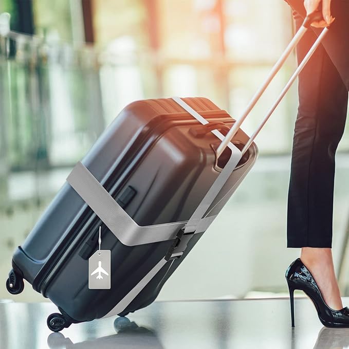 Weewooday 8 Pcs Luggage Straps Suitcase Tags Set for TSA Approved, 4 Travel Adjustable Suitcase Belt, 4 Silicone Luggage Tags with Name ID Card Travel Accessories(Light Gray,Airplane)
