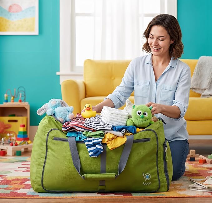 Bago Large Foldable Duffel Bags for Traveling Women & Men - 100L Packable Duffle Bag for Travel with Shoe Compartment - Water Repellant, Heavy Duty, Lightweight Folding & Collapsible (Green)