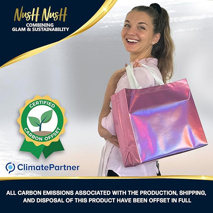 - Eco-Friendly Gift Bags – Nush Nush has partnered with the renowned non-profit Climate Partner to offset all carbon emissions associated with the entire life cycle of our products. These stunning pink gift bags are not only beautiful and reusable but also 100% carbon neutral.