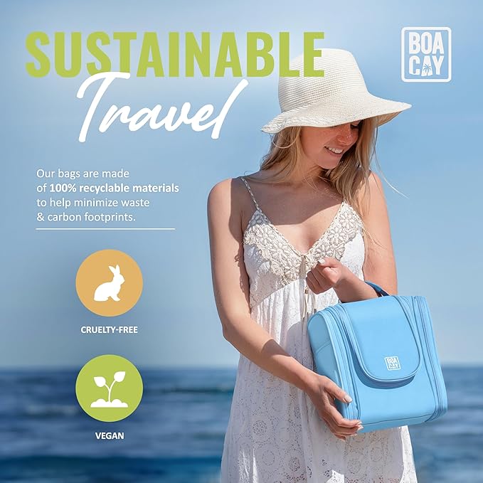 BOACAY Hanging Travel Toiletry Bag for Women and Men, Makeup Bag, Bathroom & Shower Organizer Kit for Accessories, Cosmetics, Travel Essentials
