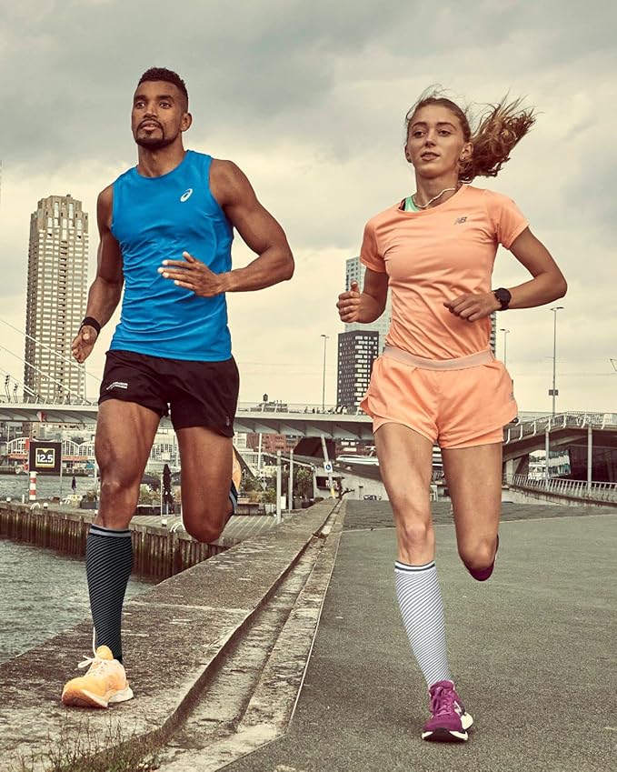30-40mmHg Medical Graduated Compression Socks for Women&Men Circulation-Compression Stockings-Knee High Socks for Support,Hiking,Running(2 Pack Strip Black Grey,L-XL)