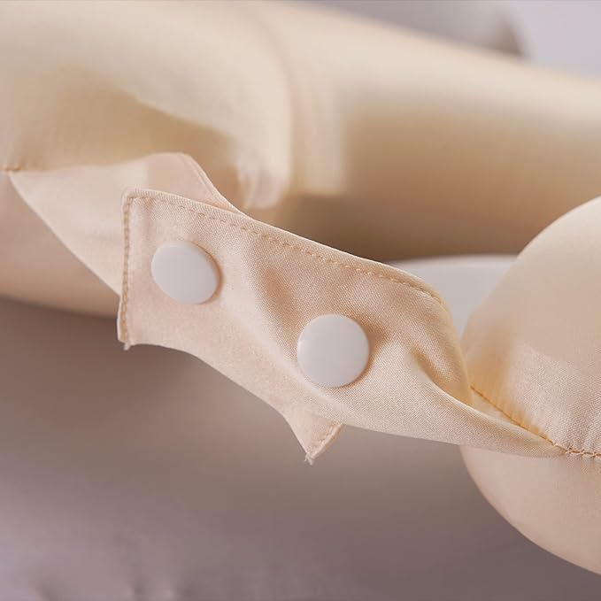 - REMOVABLE Pure Silk COVER - The silk cover of our neck pillows for traveling is removable. Enjoy clean, sustainable chin support from the neck pillow for kids and family members. With its snap closure, this airplane pillow can be easily attached to your carry-on luggage, backpack or car headrest without taking up extra space.