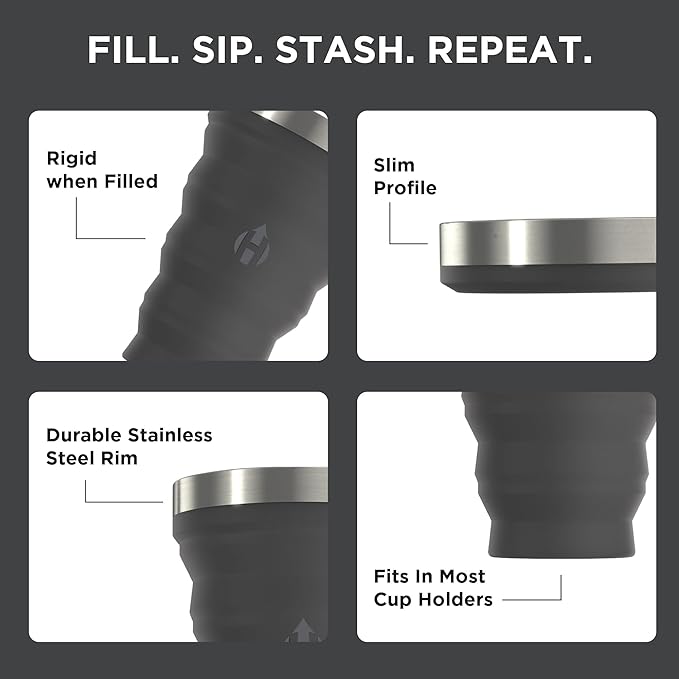 - DURABLE STAINLESS STEEL RIM: Adds structure and a sturdy lip for comfortable sipping - without compromising packability.