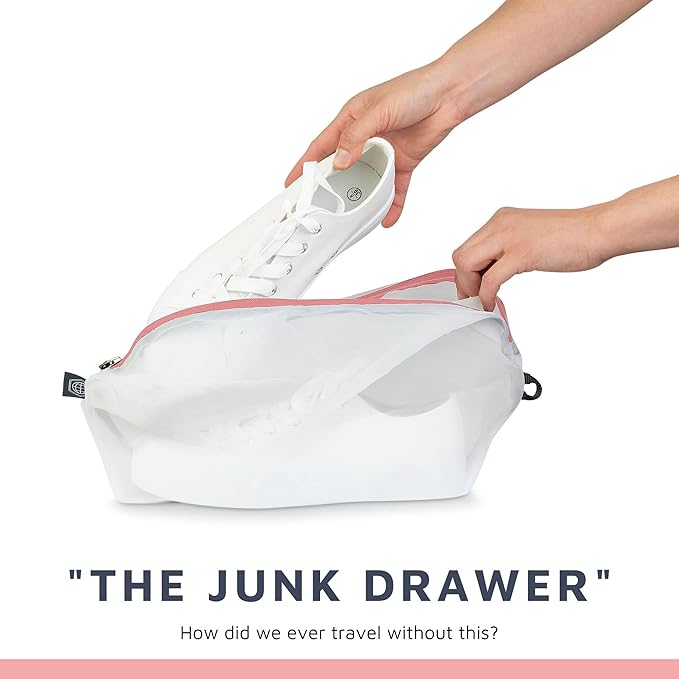 - LUGGAGE ORGANIZER- See through mesh makes organization easy. Keep different outfits in separate compression cubes and always be ready for what’s next! Easily pack away clothing like raincoats/heavier jackets that are not used as often.