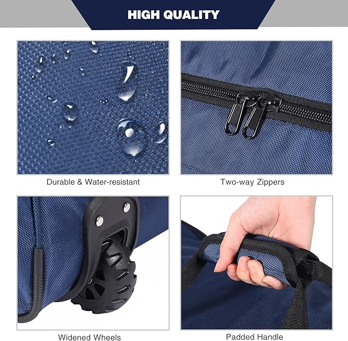 - Portable Bag: There are comfortable side carry handles for easy carrying. The duffel bag with rollers is ideal to be used as travel bag, airplane carryon, luggage, gym bag, sports bag, camping bag, storage bag.