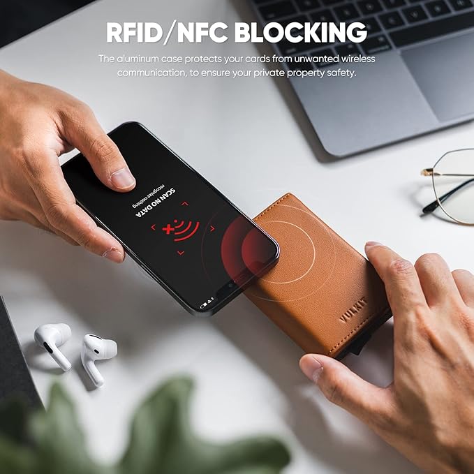VULKIT Pop up Wallet Minimalist Cash Wallets RFID Blocking Leather Smart Credit Card Holder with Magnetic Closure for Men