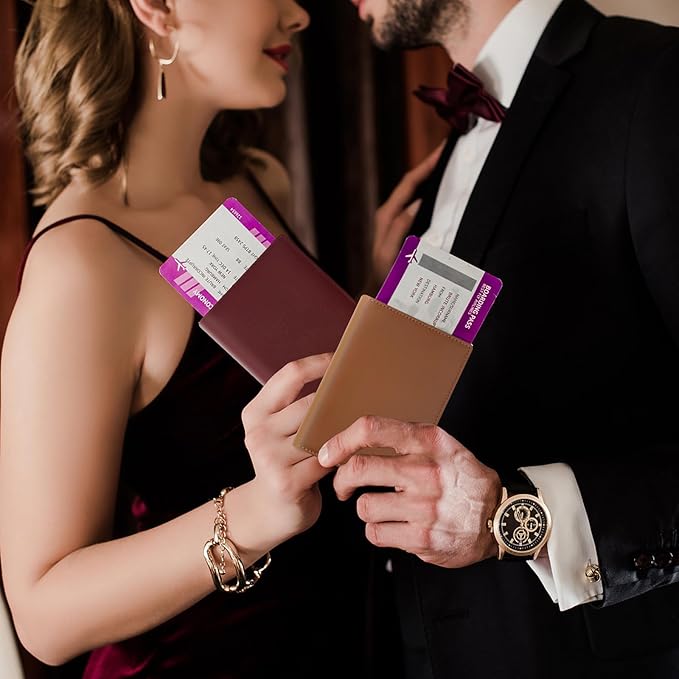- Practical Travel Accessorie: The leather passport wallet with practical design, including a Passport book and air ticket slot, 2 SIM Card Slots, 3 card slots, a 4X3 inches clear card slot. Allows convenient access to information during boarding and transit.