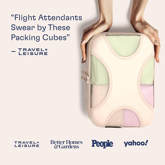 Shacke Premium 5 Packing Cubes Set - Lightweight Mesh Travel Luggage Organizers with Laundry Bag, 5-Piece Suitcase Storage System (Cream)