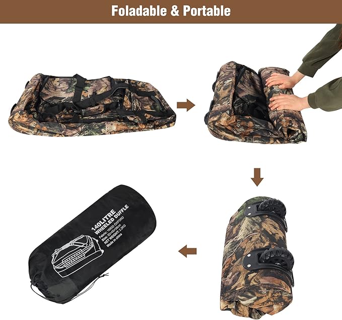 - Multifunctional: The roller duffel bag is used as travel bag, airplane carryon, luggage, gym bag, sports bag, camping bag, storage bag. Always take this folding duffle with you on any trip, open up when you need to carry gifts or transfer stuffs.