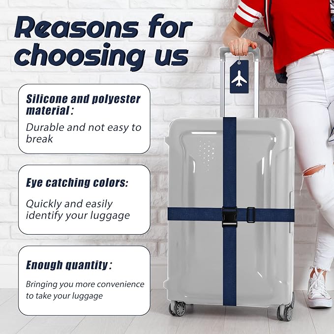 - Considerate Design: you can write down your information directly on the card with a pen, no need to worry about that your personal information will be peeped as the half of the luggage tag will hide your details well; The luggage accessories straps can withstand a force up to 400 pounds, which will ensure the security of your luggage. The luggage strap and suitcase tags set is a gift for family, friends and elders who love to travel or go out.