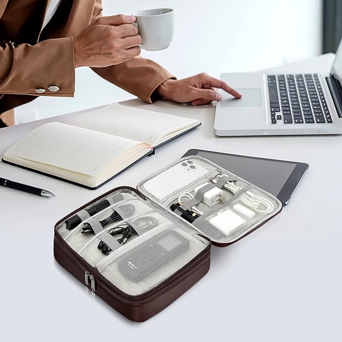 - PORTABLE & CONVENIENT: Size 11.02 X 8.27 X 3.54 inches. The travel electronics organizer bag could fits your briefcase, luggage and backpack without taking much space. The travel cable organizer is designed with a hand strap for easy carrying, and 2 way zippers make it easier to open and close the tech bag to take your electronic accessories.