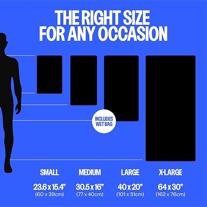 Acteon Microfiber Travel Towel & Wet Bag Set, Large Quick Dry Silver ION Odor-Free Mega Absorbent Fiber, Fast Drying Men & Women for Body Sweat, Beach, Pool, Camping, Gym