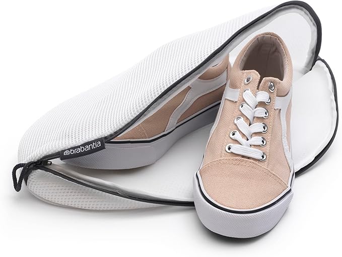 Brabantia Mesh Zip Up Sneaker Bag for Washing Machine (White) Laundry Protector for Cleaning Tennis Shoes, Running Shoes, Athletic Shoes