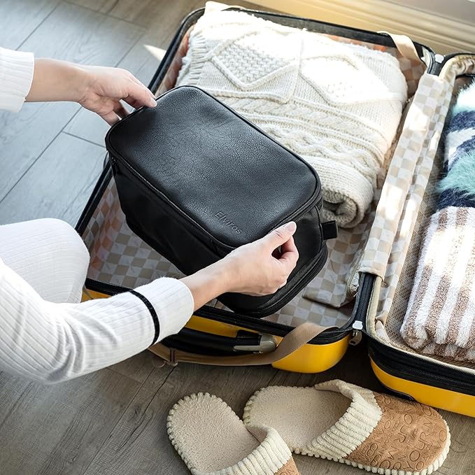 - WATER RESISTANCE STURDY MATERIAL: Exceptionally well built, the toiletry bag is made of PU leather, water-resistant nylon lining to keep moisture out of the bag. Premium zipper and reinforced seams are also implemented for long-lasting performance