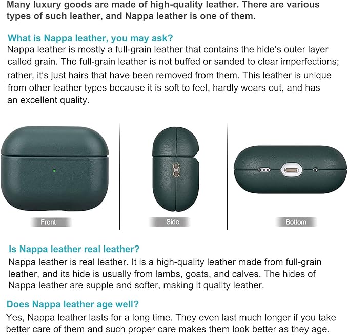 - 【360-Degree Protection】All-round protection design philosophy, Skin-friendly genuine leather cover protects your AirPods against scratches, dirt and daily wear and tear. Ultra-robust and designed to last