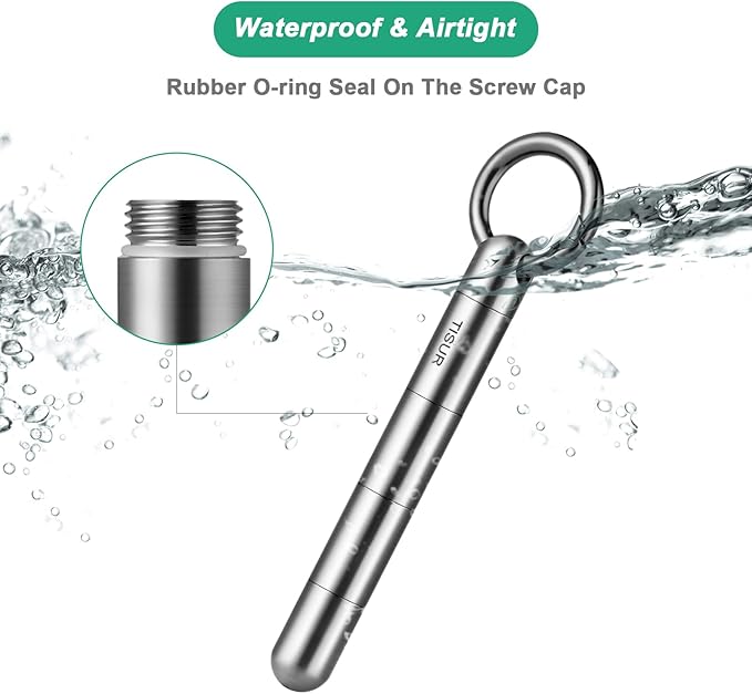 - Made of Titanium Alloy- Our Large Keychain Pill Holder is made of Titanium Alloy, Lightweight and Sturdy, Corrosion Resistant;Non-Toxic can directly contact pills,safely store your medicines