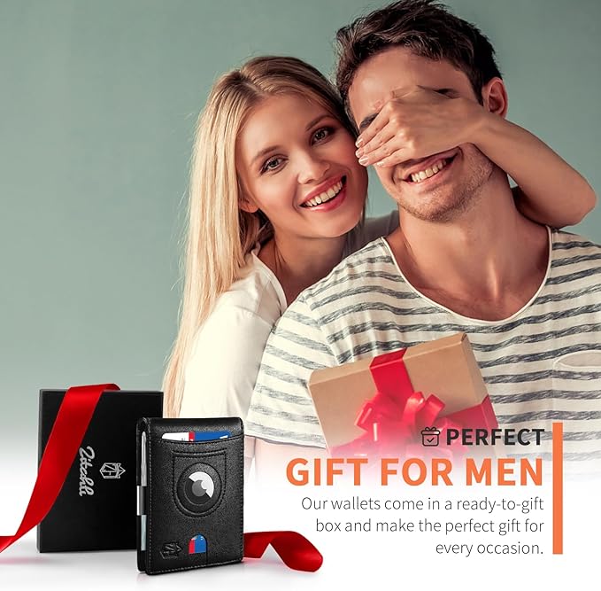 - Ultimate Gifts for Men - This mens AirTag wallet comes in classy gift box package. It's a good idea to send this mens wallet as the gifts in birthday, anniversaries, Fathers Day, Christmas and other special occasions to someone you love