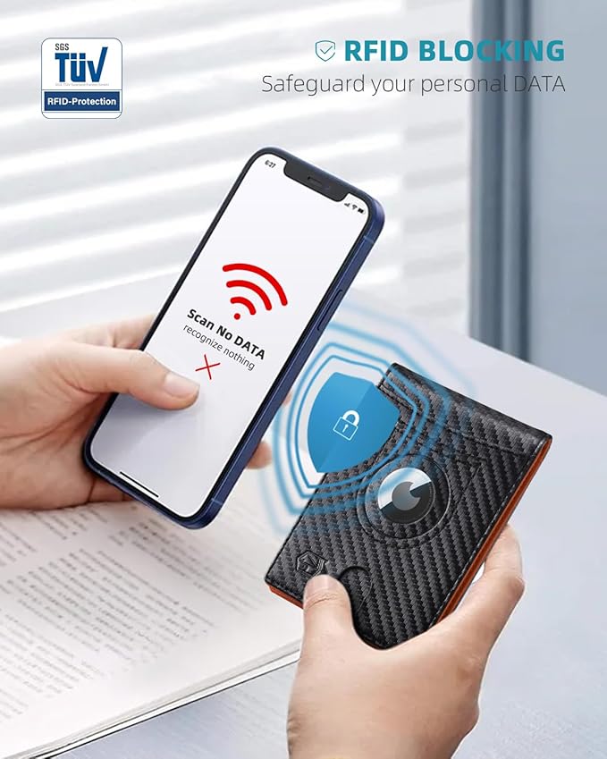 - Rfid Blocking Wallet- This wallet for AirTag boasts RFID blocking shield technology, safeguarding your personal and financial data against unauthorized scanning and identity theft. Enjoy peace of mind knowing that your information is safe and secure