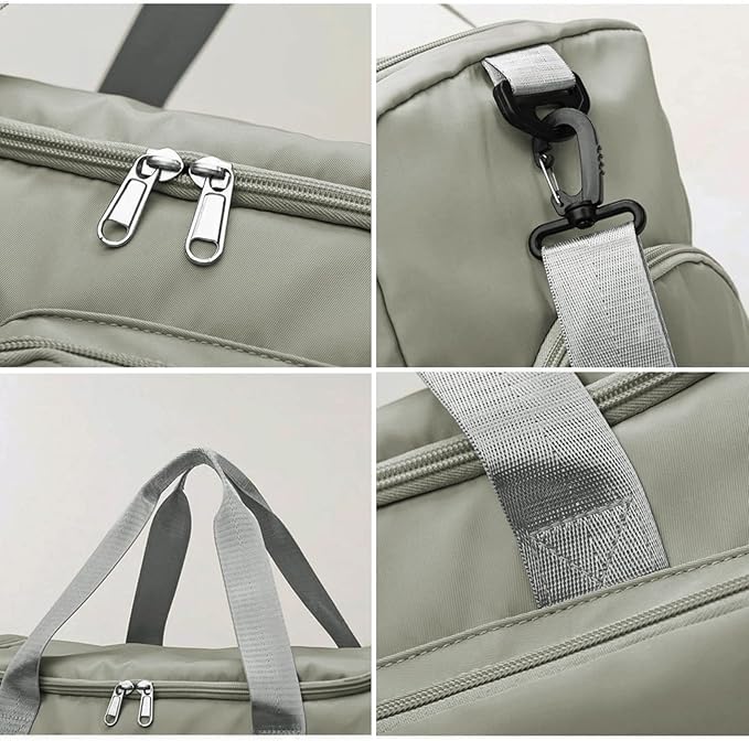 - Multifunctional Pockets: In order to meet the different needs of customers,our weekender bag has many compartments to hold different item. The main compartment was designed to hold gym accessories and daily supplies.It also has a shoe compartment and a wet pocket for accommodating sports shoes and wet towel. There are two front pockets and one side pocket, one back pocket, youcan take and bring more carry-on goods or water bottles.