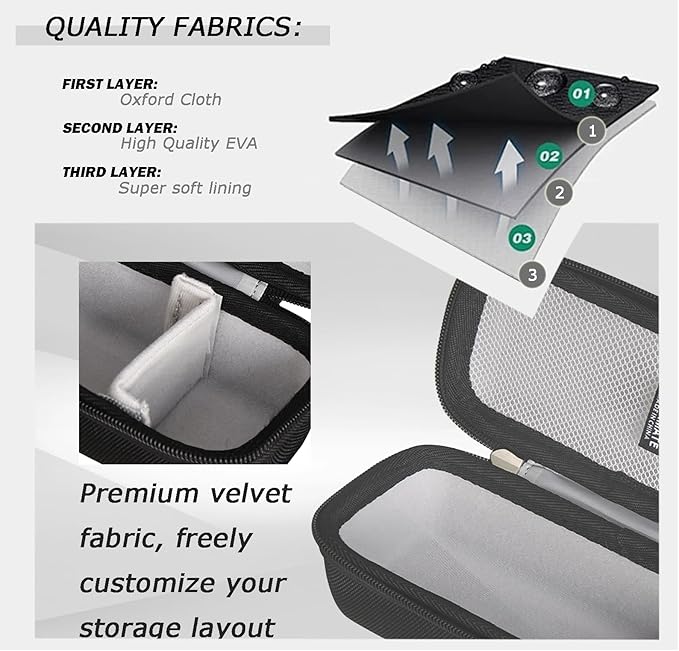 - Convenient Storage:Smooth and rigid 360-degree zipper is easy to open and close. hard shell with a handle strap allows you to easily carry it.Includes a built-in mesh pocket for accessories, and an easy-to-carry wide handle for comfort on the go.