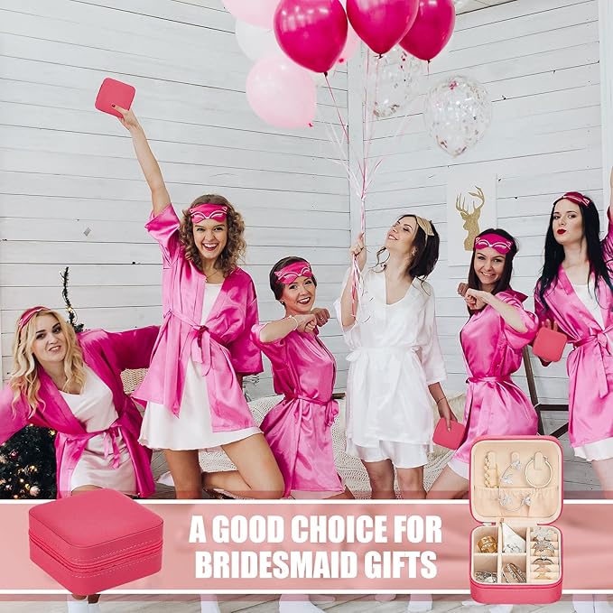 Taiyin 6 Pcs Travel Jewelry Case Box Bridesmaid Gifts Bulk Travel Jewelry Cases Boxes Small Jewels Organizers Mini Accessories Ornaments Storage for Women Girls Wedding Gifts (Rosy)