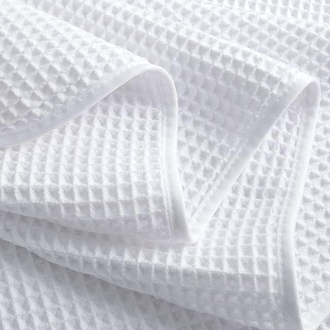 - Microfiber thoroughly dries faster and gentler than traditional fibers; waffle weave feels smoother on your skin and is less likely to collect lint or debris