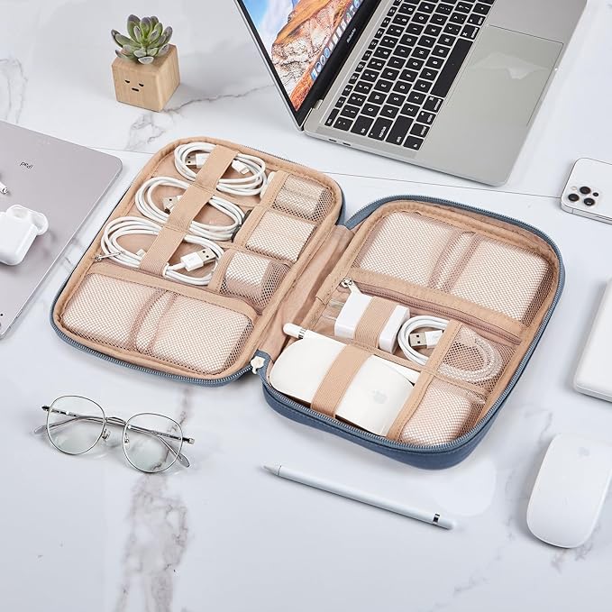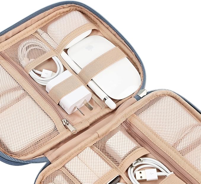 NISHEL Travel Cord Organizer Case, Tech Electronic Bag, Essentials for Charger, Cable, Phone, Hard Drive, USB, SD Card, Aegean-Blue