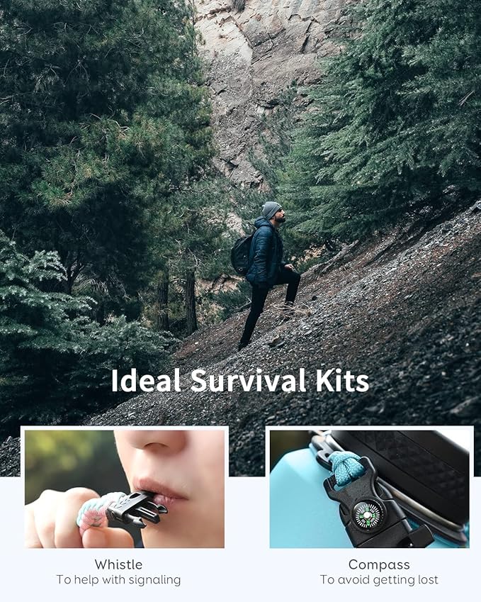 - 【Full-Function Accessories】: You can sip through the flip-up straw lid and drink like a fish through the spout lid. Each lid comes with a rubber seal ring to ensure 100% non-leakage. The functional paracord handle is portable on the go. Compact compass and whistle are ideal survival kits for expeditions in the wild. The carabiner helps clip the tumbler anywhere.