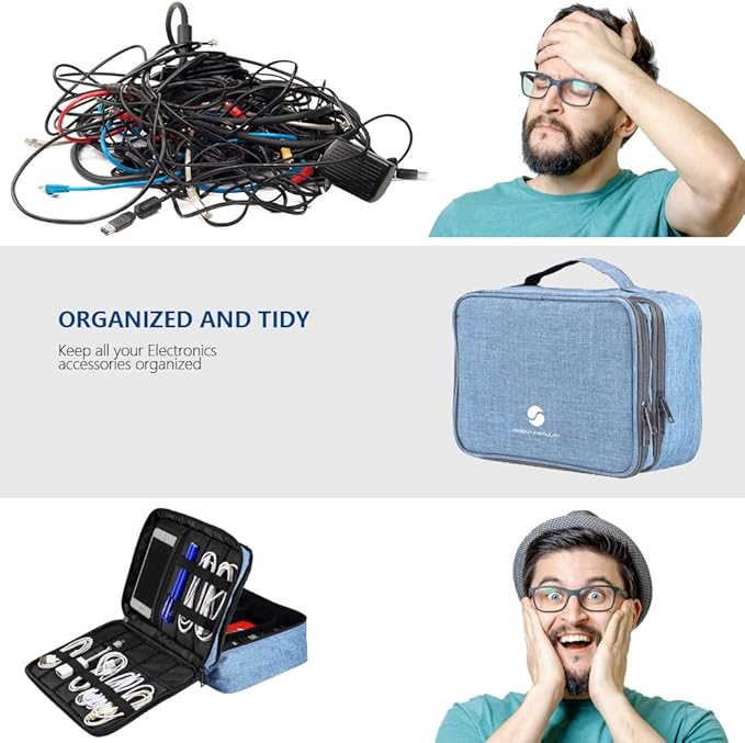 - 【LRGE CAPACITY & ORGANIZED】SAY GOOBYE TO YOUR MESSY CABLE. Keep all your electronics accessories organized. Multiple pockets and elastic loops sleeve offer great flexibility for packing electronics accessories such as USB Cable Cord, Cellphone, Flash Drive, Wall Charger, SD/TF Card, Hard Drive, Power Bank, Earbuds, Clipper, Mini Camara.