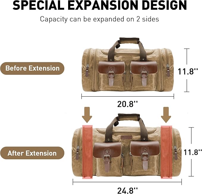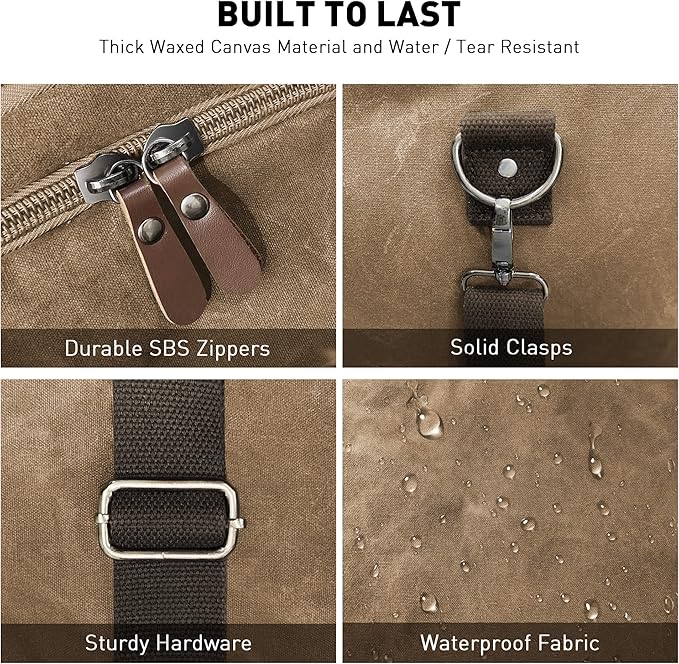 Wildroad Waxed Canvas Genuine Leather 50L Waterproof Duffle Bag - Vintage Travel Weekender Overnight Carry On