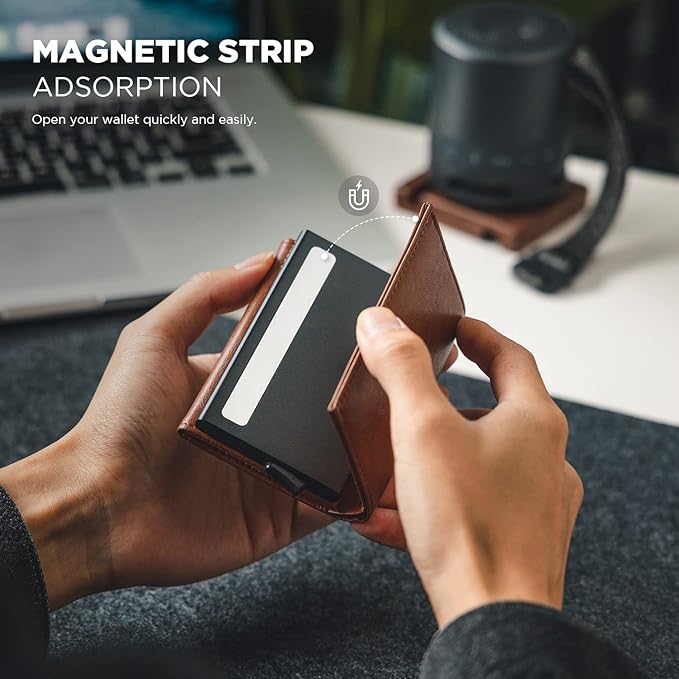 - Smart Wallet for Men - Slide the lever to pop out the cards smoothly and orderly, enabling you to easily access any of the cards. A pocket-size wallet is suitable for put in a front pocket or anything backpack.