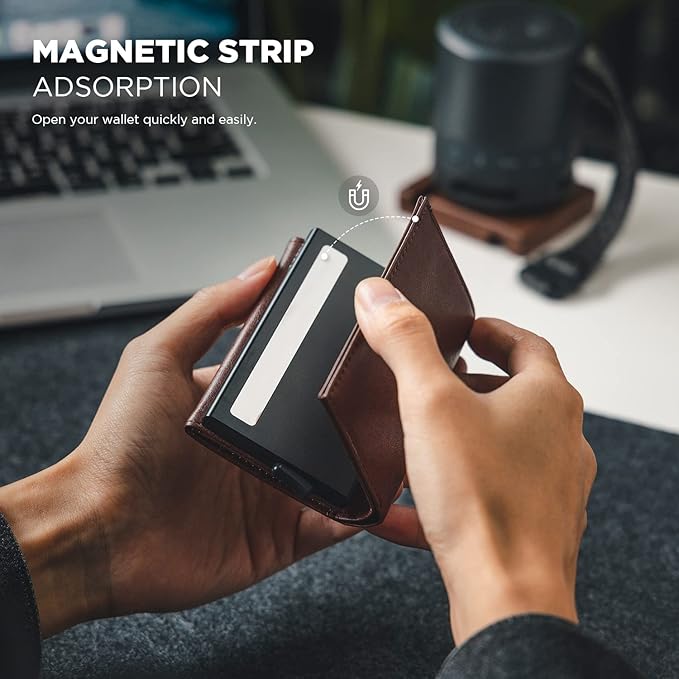 - Smart Wallet for Men - Slide the lever to pop out the cards smoothly and orderly, enabling you to easily access any of the cards. A pocket-size wallet is suitable for put in a front pocket or anything backpack.